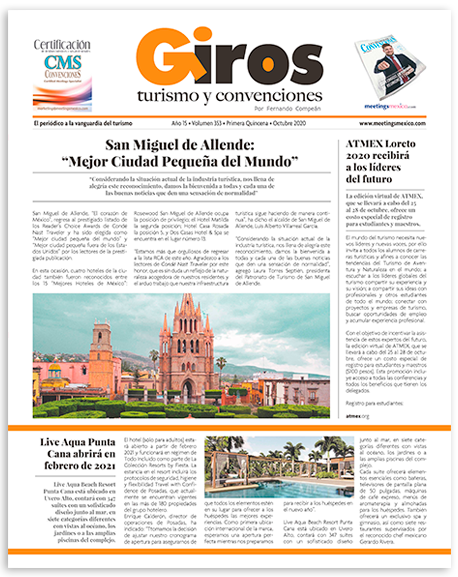 El único periódico que nos proporciona información quincenal sobre la realidad nacional e internacional en materia de convenciones, congresos, exposiciones, destinos, hotelería, agencias de viajes, líneas aéreas, productos, servicios del Turismo en México y Latinoamérica.